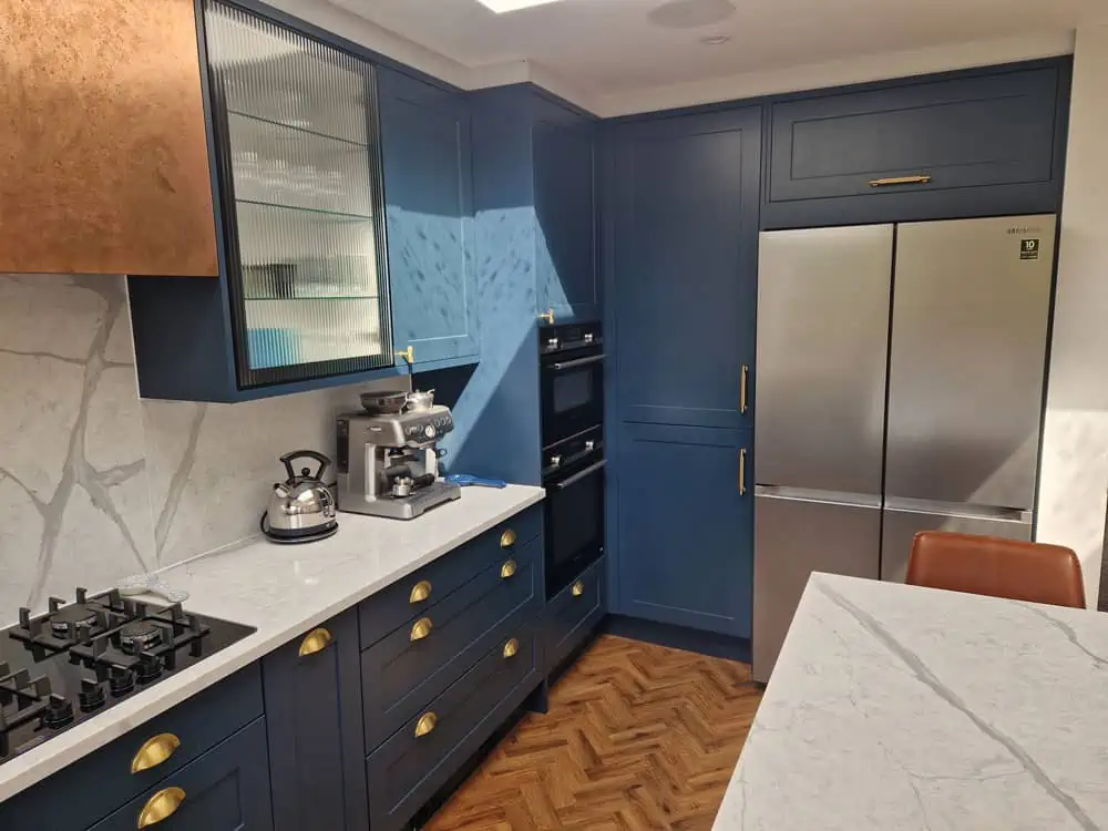 As they have their own kitchen company service, we were able to order directly with them. We drew up everything together and the results are beyond our expectations. Clinton cleverly masterminded some of our customised units to fit everything we wanted. Their electrician worked closely with me to figure out all the lighting and wall sockets and ended up rewiring our whole house for us.